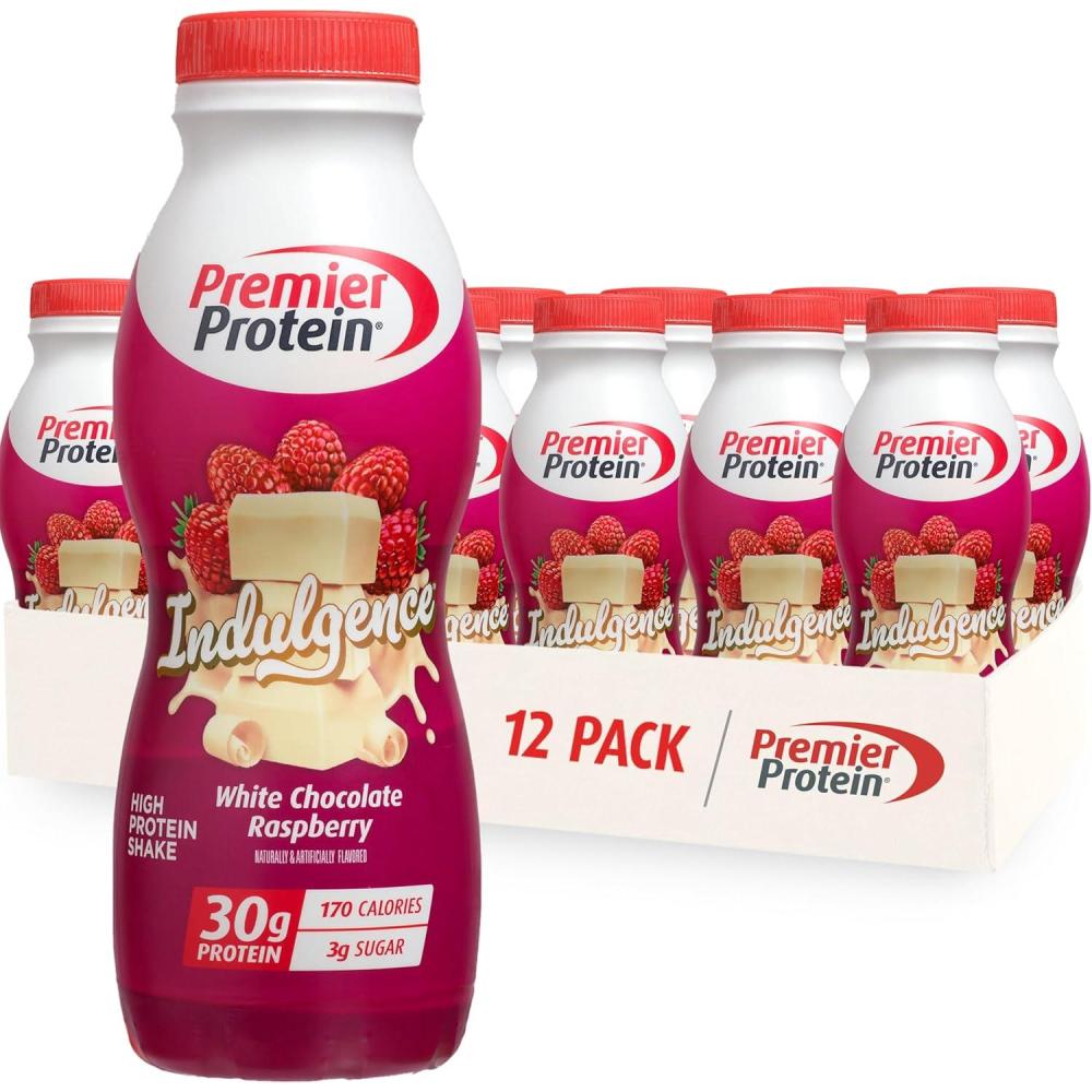 Premier Protein Shake INDULGENCE, White Chocolate Raspberry, 30g Protein, 170 Calories, 3g Sugar, 11.5 fl oz, 12 Pack (Packaging May Vary)(White Chocolate Raspberry)
